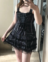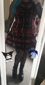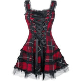 - This spooky and pagan occult inspired tartan plaid lace-up dress is sure to impress! Perfect for gothic babes who embrace dark fashion aesthetics with a pin-up girl twist!