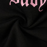 - The word "baby" in enchanting gothic pink on the chest adds a touch of innocence to your naughty side.