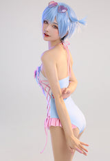 - This gorgeous happy bunny ruffled & corseted adult onesie doubles as both a swimsuit and a romper!