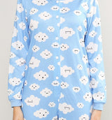 - This adorable full length cozy and warm cloud sleeper onesie is a must have for any adult-sized little one looking for a way to feel secure, safe, and oh-so smol while they dream!