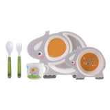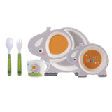 - This adorable elephant themed melamine tableware set comes complete with everything your little one needs to enjoy every meal of the day!