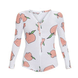 - This kawaii peachy bodysuit is so sweet, you'll want to romp around in it 24/7!