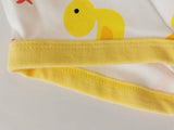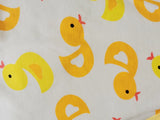 - Featuring yellow trim with an adorable yellow rubber ducky print all over.