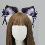 - Gothic Bat Wings: Featuring small, black bat-wing accents with purple ribbons, giving these ears a true pastel goth feel.