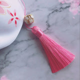 - Tassel Detail: A pink tassel with a gold ornament dangles from the side, enhancing the overall aesthetic of the cherry blossom mask.