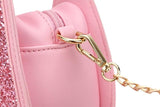- With a long gold chain shoulder strap, this cute purse is sweet and functional!