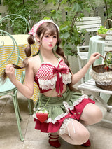 • Layered Skirt Design: The flirty green and red layered skirt is adorned with sweet strawberry accents, offering a festive and fun boho look.