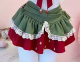 • Intricate Lace Details: White lace edging adds elegance to the skirt and top, blending softness with festive cheer.