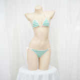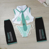- Striped micro bikini – A tiny and flirty two-piece in Miku’s signature teal and white stripes.