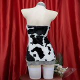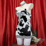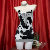 Get ready to moo-ve into adorable fashion with this Plush Little Cow Mini Dress! Perfect for embracing your kawaii side, this fuzzy cow print dress brings together comfort, cuteness, and a bold statement.