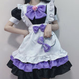 Serve up the cutest look with this Purple Black Puppy Maid Dress. Whether you're dressing up for a cosplay event, a themed party, or just adding some pastel goth flair to your wardrobe, this kawaii maid outfit is the perfect mix of sweet and edgy.