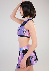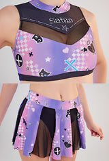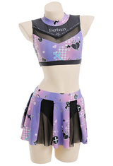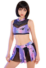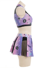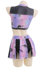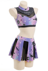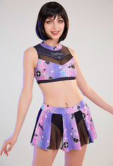 • Whether you're channeling your inner cheerleader or embracing your inner goth, this Purple and Black Holographic Pastel Goth Satan Inspired Cheerleader Outfit is sure to be a hit!