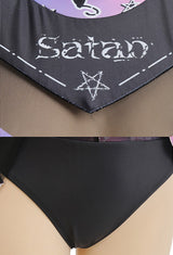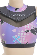 • Our Purple and Black Holographic Pastel Goth Satan Inspired Cheerleader Outfit Costume is the perfect choice for fans of the dark and edgy pastel goth aesthetic