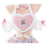 ๐ Unleash your inner teddy angel with our Teddy Angel Cake Lingerie Set! ๐ปโจ Dive into a world of kawaii enchantment with this irresistibly cute pink & white teddy bear print maid cosplay ensemble. Here's why it's a must-have:
