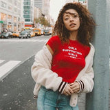 - This cute red/pink cropped tee is the perfect gift idea for kawaii cuties to show off their inner strength and feminist side!