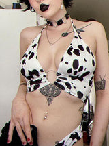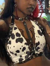 - Three sizes to choose from in this naught cow print tank top.