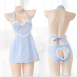 - This precious pink or blue apron inspired lolita dress is made of traditional plaid fabric for a sweet country girl vibe, paired with a heart shaped cutout on the booty! How saucy!