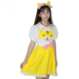 - This precious grey, black, or yellow kitty cat face jumper dress will have you purring with delight! A traditional over the shoulder suspender tank top style with built in white collared t-shirt underneath, like cute overalls, with a kawaii twist!