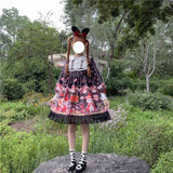 - With a vibrant and intricate pattern, elegant bows, lace trim, ruffles, and ribbon corset details, what's not to love?