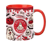 - Vibrant Halloween Design: Featuring a bright red interior and handle, this spooky mug screams Halloween fun with its pumpkin, bats, and skull decorations.