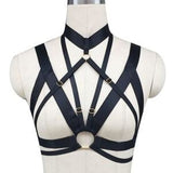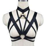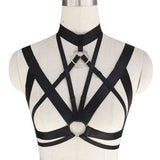 - This gothic inspired seductive O-Ring chest harness has several well placed spandex belted straps that adorn your decolage in a dark fashion!