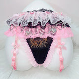 - Adjustable Garter Straps: Pink satin straps with rhinestone heart embellishments add functionality and flair to your spicy look.