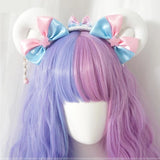 • Made of soft fabric in pastel blue & pink cotton candy colors with "baby" cabochons, bows, and silk ribbons in all the right places, these beautiful and exquisite lolita bear and cat ears are simply to die for!
