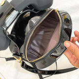 - A shiny PU vegan material adds just the right amount of sparkle.