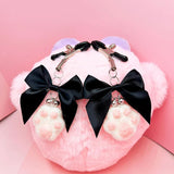 Mini silver bells dangle under the bows for extra cuteness and sound