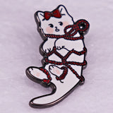 Elevate your pin game with this standout "Shibari Kitten Enamel Pin" and show off your love for cats and cheeky style!