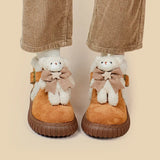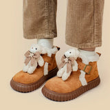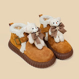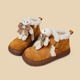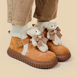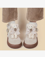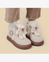 - 🎀 Teddy Bear Accents: Each bootie features a plush teddy bear, complete with a sweet bow, bringing a youthful and playful flair to every step.