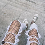 Pro Kawaii Fashion Tip: Pair these stunning  fishnet stockings with a Beautiful Pleated White Skirt , also available in our shop!