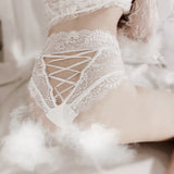 - These gorgeous lacy corset back panties have a luxurious silk ribbon tied up the backside, and are available in plus sizes all the way up to 3xl!