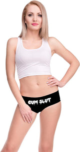 • These cute little cumslut panties have the perfect cut to flatter almost any booty! With contrasting black and white, and a booty short cut, they're the perfect undies for the kinky and kawaii!