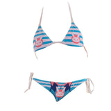 - Cute little bunnies on the bra top, and on the front and back of the bottoms!