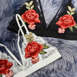 • This elegant and chic lacey embroidered bralette with 2 tasteful straps across the chest has  well placed floral embroidery that adorn your decolage in a very tasteful and elegant fashion.