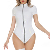 Turn heads and steal hearts in this cute and spicy latex bodysuit that brings all the kawaii vibes with a daring wet look finish. Whether you're channeling your inner baddie or just feeling extra pink, this zip-up bodysuit is a total must-have for your wardrobe.