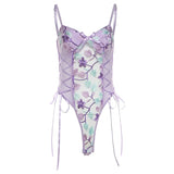The Lavender Garden Bodysuit is a dreamy mix of sheer mesh, floral embroidery, and delicate lace-up details. This one-piece lingerie set blends soft femininity with a bold silhouette, making it the perfect statement piece for those who love a kawaii-inspired aesthetic with a flirty edge.