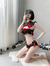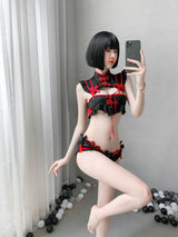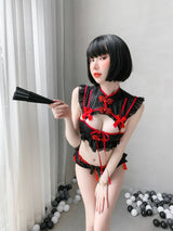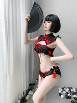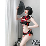 • This exquisitely detailed oriental chinese inspired lingerie set has traditional asian influences, with seductive ruffled lace fabric and beautiful fastenings with red trim.