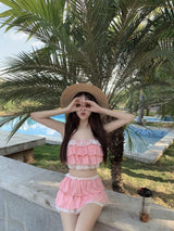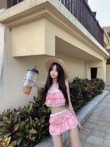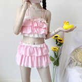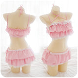 - This ruffled pink princess lingerie set / bathing suit is a must have for any little who loves kawaii fashion and cute pink aesthetics, while basking at the beach or by the pool!