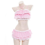 - Made of sweet pink ruffled and layered swimwear fabric that can be worn in the pool safely, or worn as a lingerie / cosplay set!