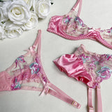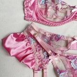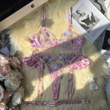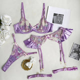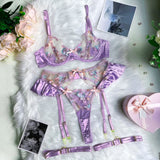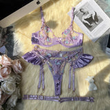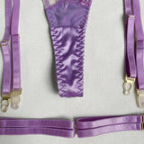 Indulge in the perfect mix of elegance and spice with the Satin Lavender Luxury Lingerie Set. Designed for those who love intricate details and a soft feminine touch, this lingerie set brings together sheer floral embroidery and satin accents for a dreamy yet bold look.