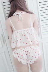 - This strawberry-polkadot nightwear inspired lingerie set combines the innocence of youthful sleepwear, with the kawaii appeal of ruffles, garter belts, and the right amount of bare skin. ;)