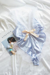 - This luxurious silky satin & lace lingerie bodysuit has gorgeous hand-details including ruffled lacey trim, a silk bow, and gorgeous embroidery.