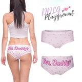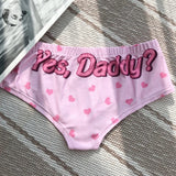 - These gorgeous Yes Daddy panties have the perfect cut to flatter almost any booty! With cute pastel pink polkadot hearts, they add an extra element of youthful charm.