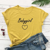 - With the text "babygirl" and a cute hollow heart graphic, it will quickly become your go to everyday tee to throw on with some comfy jeans!