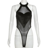 • This luxurious jet black goth inspired bodysuit has gorgeous hand-details including soft velvet fabric, mesh see-through areas, and a beautiful flattering halter neck style cut.