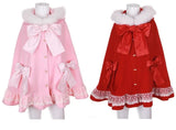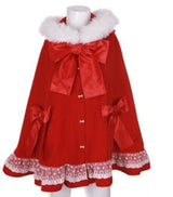 - Made of the highest quality of fabrics that keep you snuggly and warm, with stunning hand embellished details such as a cozy faux-fur red-riding-hood style hoodie, delightful Christmas inspired ribbons, white lace scalloped trim, and beautifully detailed buttons!