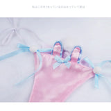 • πŸŽ€ Adorable Appeal: The skimpy bikini top and bottoms are designed for maximum cuteness, featuring a sprinkle of pink and blue hues that scream "Notice Me, Senpai!"