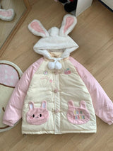 - Hooded design with plush bunny ears for the ultimate kawaii touch